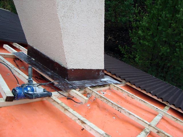 - Les travaux préparatoires consistent à nettoyer le tuyau et le toit de la saleté et de la poussière et à traiter la surface avec du mastic ou un apprêt.