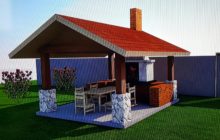 Dans la cour de la maison sur le terrain de jardin, les résidents d'été installent souvent un gazebo avec barbecue, dans lequel ...