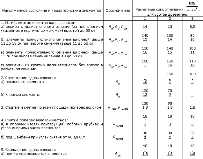 L'ensemble de règles contient également des méthodes de calcul de différentes structures en bois. Voici des formules pour calculer les paramètres des éléments étirés centralement, le coefficient de flexion longitudinal compressé centralement et un certain nombre d'autres indicateurs importants.