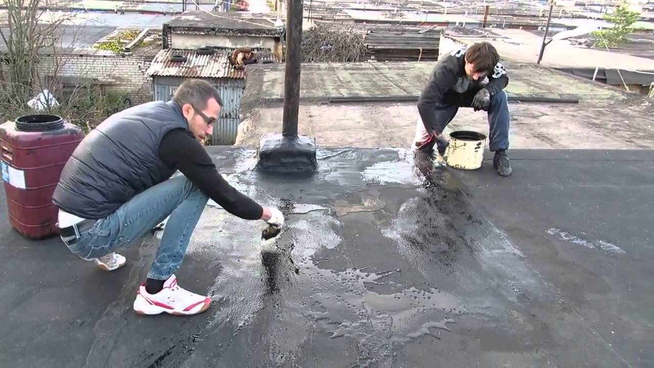 - Parfois, les spécialistes utilisent les deux types d'imperméabilisation. La surface plane est d'abord recouverte d'une membrane, et dans les endroits et les joints difficiles d'accès, la surface du toit est traitée avec du mastic polymère liquide.