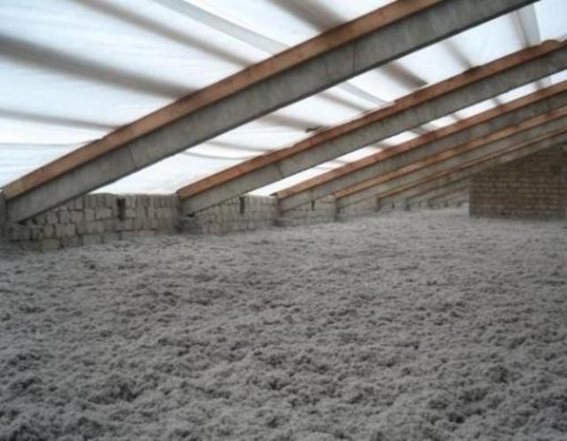 Utiliser des matériaux en vrac dans leur état d'agrégation n'est possible qu'à partir du grenier. L'argile expansée, la vermiculite, la sciure de bois et d'autres substances friables agissent comme un isolant thermique. Si des composants naturels sont utilisés comme isolant, par exemple de la sciure, des mesures supplémentaires doivent être prises pour les protéger des insectes et des rongeurs. Vous pouvez isoler le plafond selon cet algorithme: