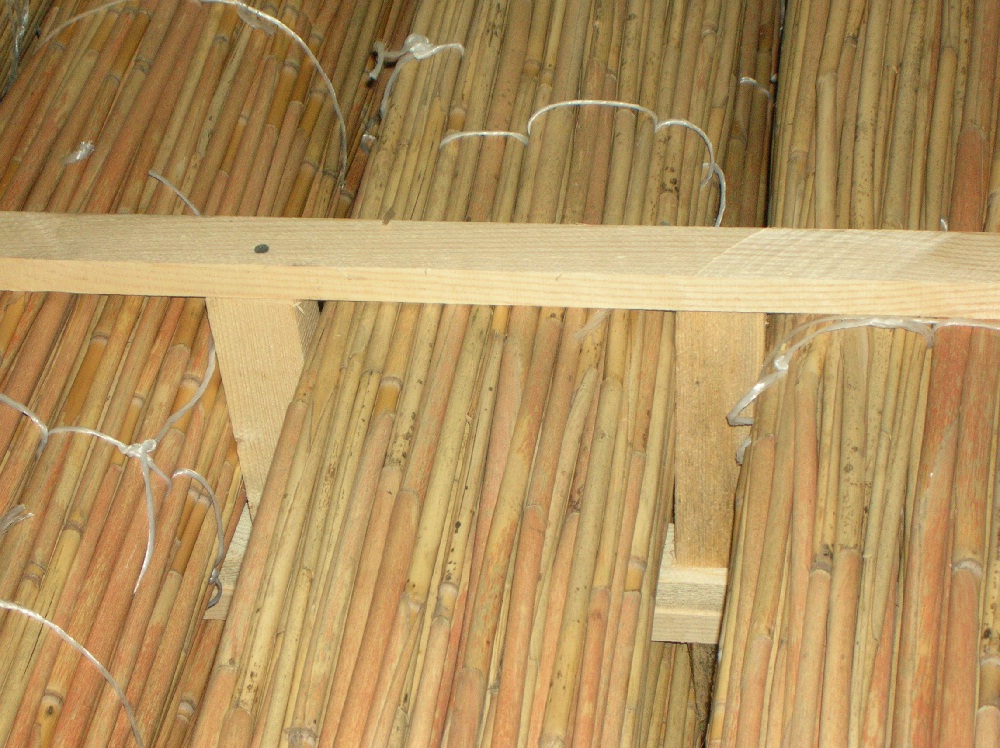 Les roseaux sont à proximité de nombreux plans d'eau. Mais l'approvisionnement de ce matériel est une tâche ardue. Pour utiliser des roseaux comme isolation thermique, il est attaché dans des nattes à l'aide de fil métallique. Ces ligaments sont placés entre les retards en plusieurs couches afin que les coutures et les crevasses soient remplies autant que possible. Comme les algues, les rongeurs ne commencent pas dans l'isolation des roseaux, ils résistent à l'humidité et ne pourrissent pas.