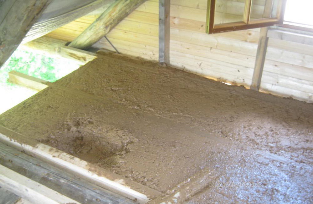 C'est un matériau aux propriétés d'isolation thermique élevées. Le seul inconvénient de l'isolation est la masse. Pour cette raison, diverses versions légères du matériau sont souvent utilisées. De la paille ou de la sciure de bois sont ajoutées à la solution d'argile liquide. La proportion est déterminée pour que la solution ne perde pas de plasticité et pénètre facilement dans les fissures et les fissures. Le côté positif de l'argile - sa prévalence et ce matériau n'a pas besoin de traitement supplémentaire - il suffit de le diluer avec de l'eau.