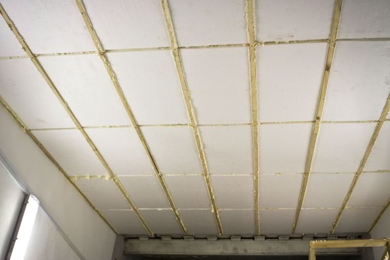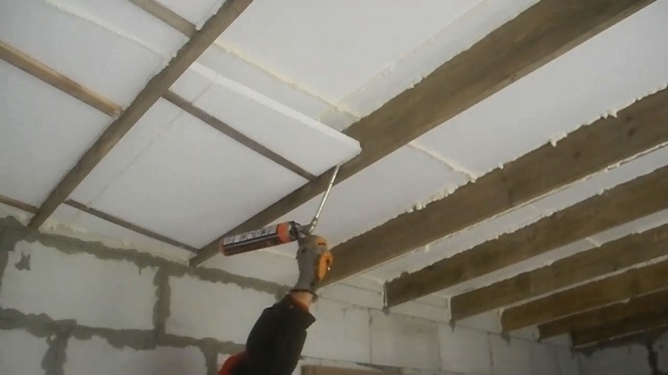 Il y a des espaces entre les plaques isolantes individuelles. Pour les fermer, utilisez de la mousse ou du mastic. La fermeture cosmétique de la surface comprend l'installation de treillis d'armature et de plâtre ou la fixation de plaques de plafond. Dans certains cas, la préférence est donnée aux plafonds tendus. Mais, nous ne devons pas oublier l'emplacement du câblage électrique pour le montage des appareils d'éclairage.