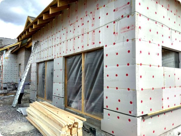 Une couche de mousse ultérieure est installée dès que le premier produit est fermement fixé. Dans la zone des coins et près des ouvertures de fenêtres, le matériau est fixé avec des coins métalliques. Les joints sont collés avec un ruban de renfort spécial. Surfaces de plâtre par la suite.