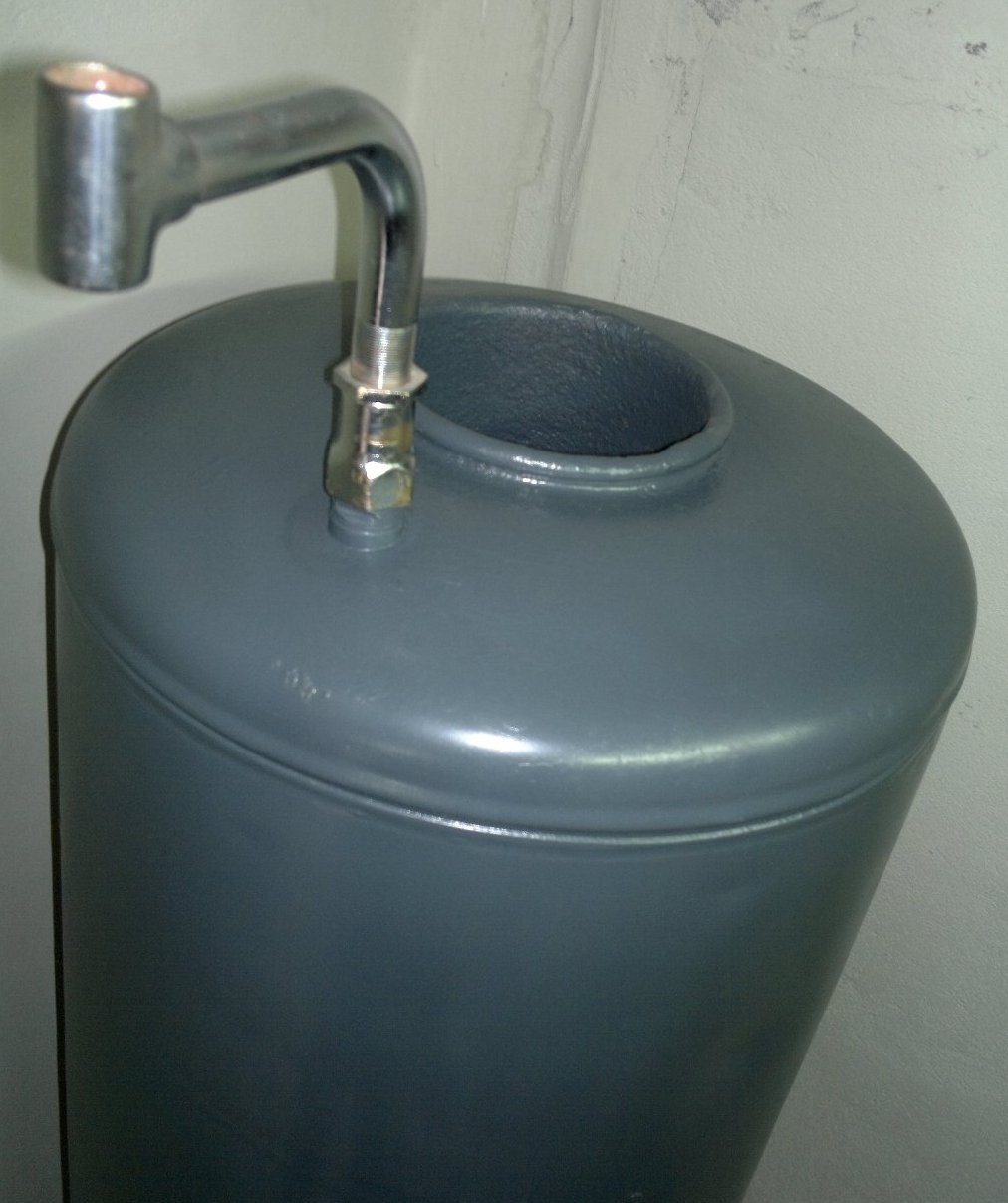 La colonne de stockage est constituée d'un réservoir métallique d'un volume de 50 à 300 litres. Le chauffage se produit pendant la combustion du gaz dans la chambre de combustion et l'élimination ultérieure des produits de combustion. Distinguer entre la zone d'échange de chaleur par convection et par rayonnement. Ce dernier est situé dans la chambre de combustion au fond du réservoir. La chaleur est transférée aux murs au moyen du rayonnement des gaz brûlants. Dans cette zone, la température atteint environ 1200 ° C. Ensuite, dans la partie convective, les fumées dégagent de la chaleur. La température de ce dernier à la sortie est comprise entre 120 et 200 ° C (selon l'intensité du chauffage). Un échangeur de chaleur convectif est placé le long de l'axe du réservoir pour un chauffage supplémentaire de l'eau.