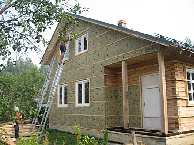 - des plaques d'isolation sont accrochées aux murs de la maison. À l'extérieur, les dalles sont recouvertes de revêtement.