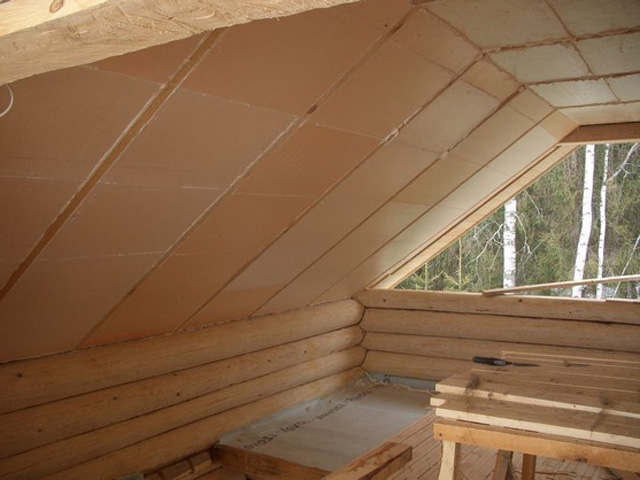 L'isolation du toit avec un tel matériau n'est pas pratique. Ça brûle bien. De plus, les rongeurs aiment y aménager leurs nids. Si, néanmoins, il a été décidé de réaliser une isolation thermique à partir de mousse de polystyrène, des feuilles à haute densité sont prises.