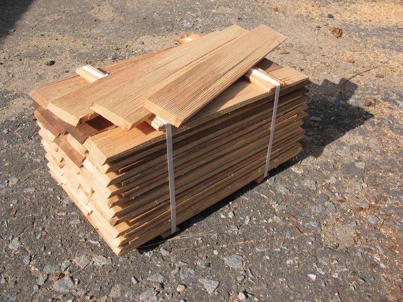 Le bardeau est une mince plaque de bois. Leur épaisseur moyenne est de 3 à 8 mm. avec une largeur de 8-16 cm et une longueur de 35-45 cm Traditionnellement, les bardeaux étaient en pin. En tant que matériau, vous pouvez également choisir l'épinette ou le mélèze. Pour la fabrication de matériaux adaptés aux arbres de petit diamètre. Une condition importante est la présence de troncs lisses, adaptés pour couper les têtes de bloc sans nœuds. Dans le même temps, leur longueur doit être comprise entre 40 et 45 cm, le noyau des cales est exclu en raison du risque élevé de fissuration. Cela peut être fait en divisant le petit bloc en deux ou en quatre parties, après quoi le noyau est coupé. La partie restante doit être divisée en plaques minces - ce sera le bardeau. Le matériel peut être récolté à tout moment de l'année, sauf en hiver. Avant de commencer le travail, n'oubliez pas de retirer l'écorce.