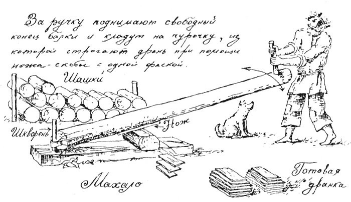 Ne travaillez pas avec un arbre sec. Le matériau doit être trempé ou bouilli dans de l'eau bouillante pendant 30 minutes avant le travail. Pour cela, un tonneau en fer convient. La digestion est utilisée pour le bois de conifères. Tout le travail se fait par jour.