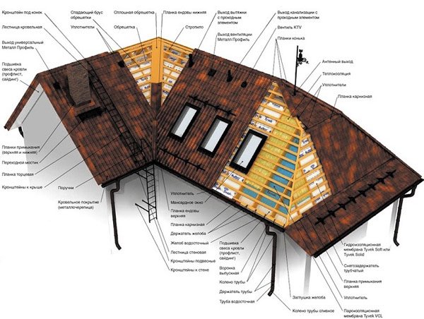 Le paramètre le plus important d'un toit à pignon est le calcul correct de la combinaison de ces parties principales de la structure.