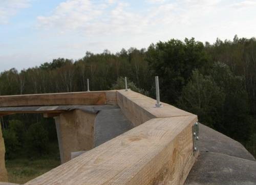 Une fois la poutre de roulement supérieure installée, toute la structure est fixée à l'aide de croisillons, puis renforcée avec des entretoises verticales. Les supports sont en bois de conifères.