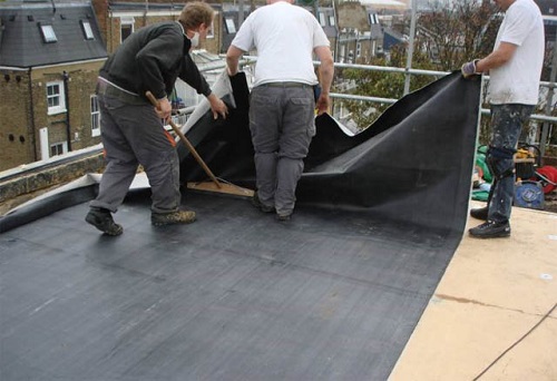 - La base du matériau des membranes EPDM est le caoutchouc synthétique. Leur résistance, comme les membranes en PVC, est renforcée par l'utilisation d'une maille de fils de polyester. L'avantage de ces membranes est leur coût relativement faible, leurs excellentes propriétés élastiques et leur longue durée de vie. L'inconvénient peut être considéré que la feuille de membrane doit être reliée à l'aide de colle. Et ce matériau rend les endroits de jonction des sections «problématiques» du toit.En conséquence, nous devons penser à réparer le toit en membrane d'EPDM plus souvent que nous le souhaiterions, car l'eau coule souvent au niveau des joints.