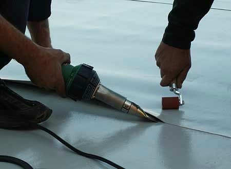 Pour décider comment réaliser correctement un toit, de nombreux développeurs préfèrent la méthode thermosoudée pour assembler les membranes des membranes de toit. Il vous permet de fiabiliser le toit tout en lui donnant un aspect moderne. Le travail est effectué à l'aide d'une machine à souder spéciale. Il "dégage" un courant d'air qui a une température de 400 à 600 degrés. Pour assurer la solidité et la fiabilité de la connexion des membranes de toiture, il est recommandé de faire la largeur de la couche soudée de 20 à 100 mm.