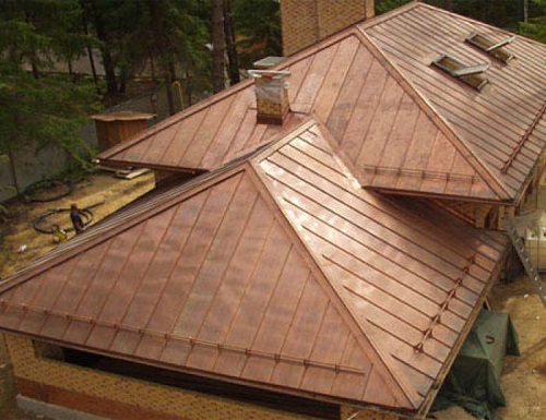 La pose de peintures sur cuivre peut commencer à la fois du coin et du centre du toit, mais la deuxième option est plus préférable, car elle vous permet de disposer les coutures de manière à ce qu'elles soient symétriques.