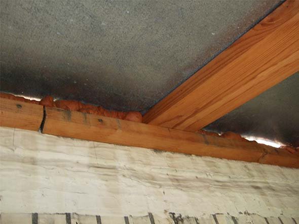 - Il est nécessaire de fixer le carton ondulé. Après cette opération, les fissures et les fissures sont remplies de mousse. De l'extérieur, il est préférable d'utiliser un mortier de ciment ou un scellant.