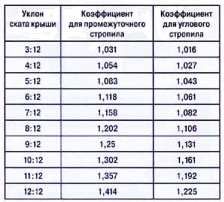 Dans le processus, toutes les dimensions mesurées pour installer les éléments de toit sont appliquées au rail, de sorte que la roulette n'est requise que quelques fois. À l'avenir, les mêmes distances seront déjà supprimées à l'aide de mesures. En règle générale, lors de l'exécution de tels travaux, ils sont guidés par le tableau suivant des coefficients du rapport de l'emplacement des chevrons et de leur longueur.