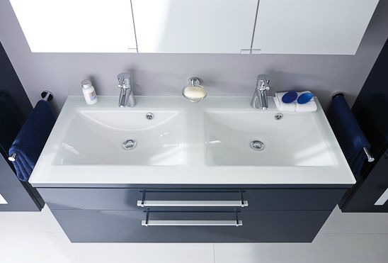 On trouve des lavabos doubles dans les grandes maisons. Toute la famille peut effectuer simultanément des procédures de l'eau et avoir en même temps son propre espace. Les lavabos doubles sont un design à la mode qui transformera l'intérieur de la pièce.