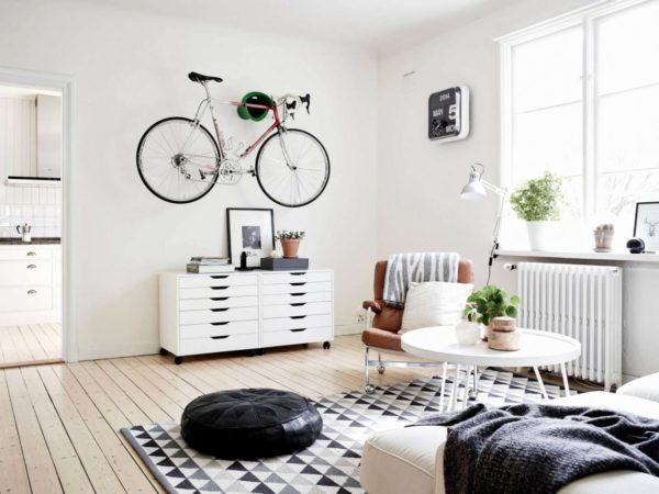 Beaucoup de personnes vivant dans des appartements ne savent souvent pas comment placer un vélo dans une petite zone, et en plus de la décision banale de le laisser dans la cage d'escalier, elles manquent de plus d'ingéniosité. Il existe une excellente solution qui étonnera par sa simplicité - pour fixer le vélo au mur dans le couloir ou même dans la pièce.
