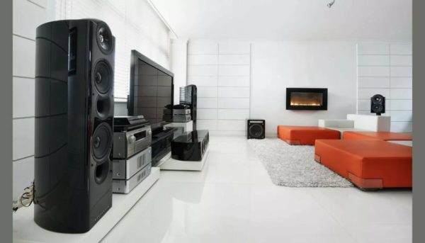 L'intérieur classique permet de cacher l'équipement. Beaucoup n'ont pas utilisé ce mouvement de conception depuis longtemps. Il sera intéressant de regarder le mur médiatique avec la disposition des gadgets sur des étagères ou des racks ouverts. Zest - une photo, plusieurs chandeliers et objets d'art intéressants qui peuvent être placés à côté de gadgets.