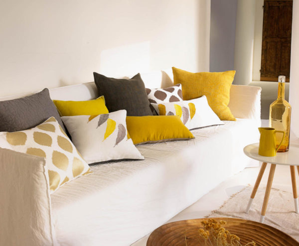 Des taies d'oreiller lumineuses sur des coussins de canapé transforment l'apparence de la pièce. Ils peuvent être mis à jour une fois par an - coudre par vous-même, décorer avec un décor original, de la broderie, des éléments tricotés ou acheter des articles prêts à l'emploi. De la même manière, vous pouvez changer les rideaux, couvre-lits, tapis, nappes, torchons et maniques, rideaux dans la salle de bain.