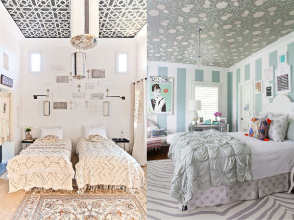 Une tendance vraiment innovante est le papier peint au plafond. Les papiers peints colorés et à motifs créeront un accent plus accrocheur que les murs lumineux.