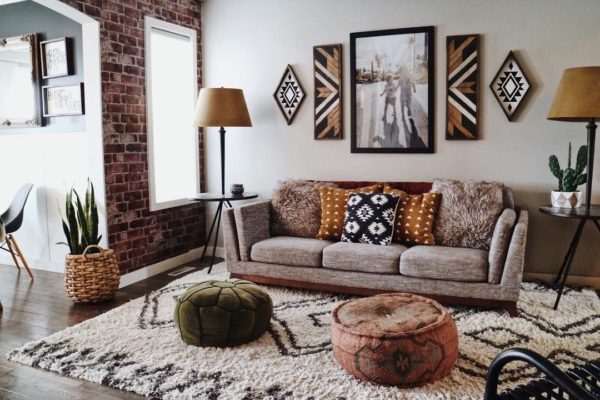 - Une couverture à carreaux ou de nombreux oreillers colorés peuvent reposer sur le canapé.