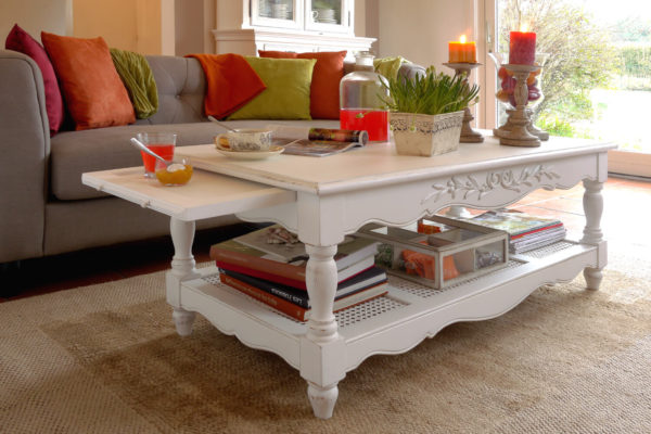 - La table basse dans la pièce suppose que quelque chose est toujours couché ou debout dessus.