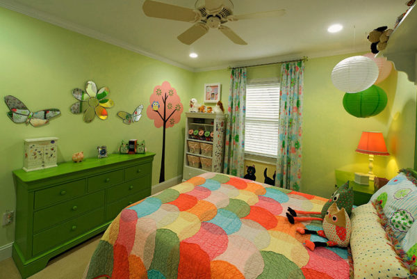 Grâce à la couleur verte, les émotions négatives disparaissent chez l'enfant et un bon rêve se forme. L'intérieur de cette couleur a un effet positif sur les bébés qui ont développé une claustrophobie.