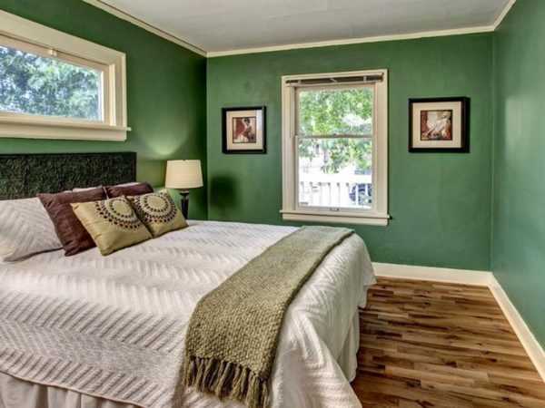 Comme vous le savez, la couleur verte de notre pays est associée à la nature, à la forêt, elle a donc un effet bénéfique sur l'organisme dans son ensemble. Une chambre verte avec des meubles en bois naturel sera particulièrement harmonieuse. Les concepteurs professionnels conseillent les combinaisons suivantes: