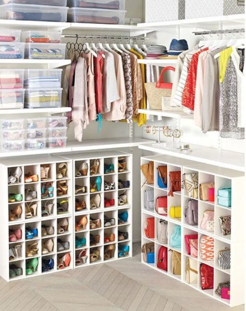 Si la zone du dressing le permet, vous pouvez planifier un endroit pour les cellules, où à l'avenir les chaussures seront pliées.