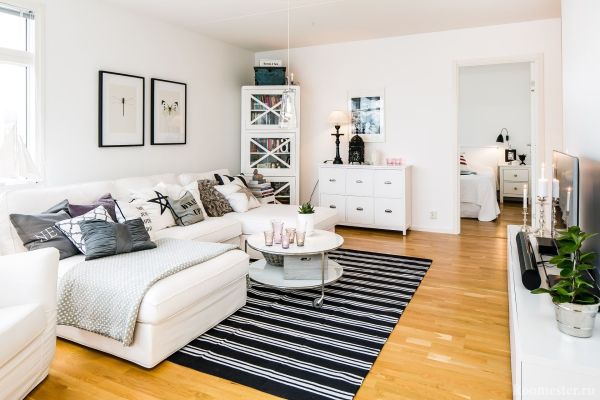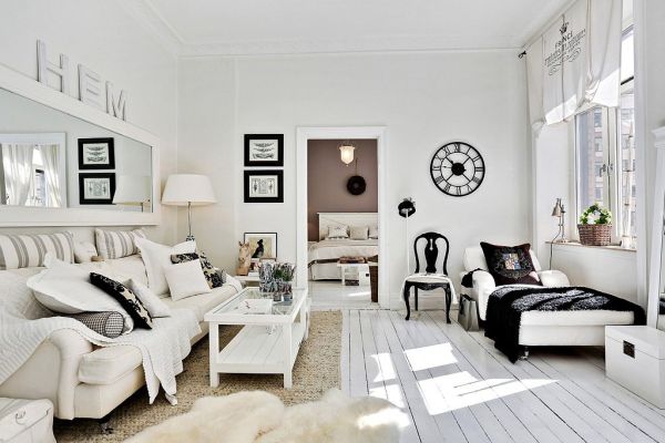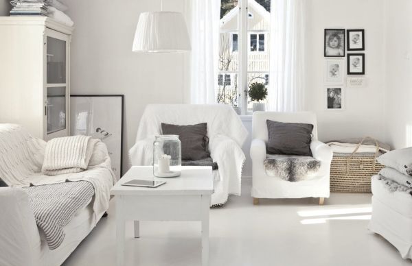 Bien sûr, l'intérieur blanc ne convient pas à tout le monde. Il sera plus difficile de maintenir la propreté et une blancheur parfaite peut être compromise même par une seule tache de café renversé. Par conséquent, ce n'est pas la solution la plus appropriée s'il y a des enfants ou des animaux domestiques dans la maison. Mais si cela ne vous fait pas peur, passez aux choses sérieuses.
