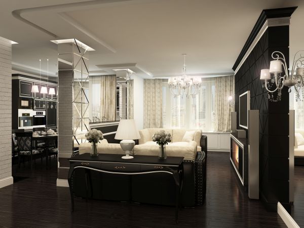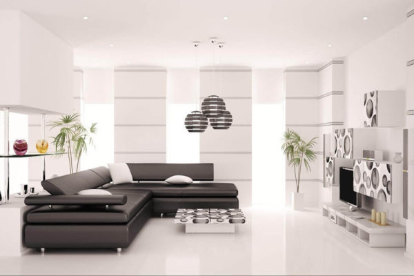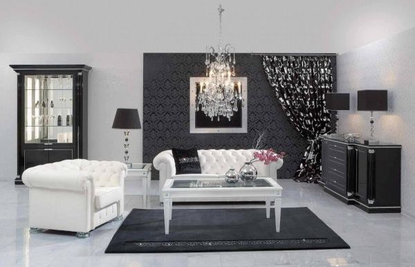 Si vous préférez des intérieurs modernes, le noir et blanc sera le meilleur choix pour votre salon. Dans ce cas, vous devez faire particulièrement attention au choix des meubles. Des chaises en plastique et des canapés en cuir épuré, des tables en verre ou en métal chromé vous conviennent.