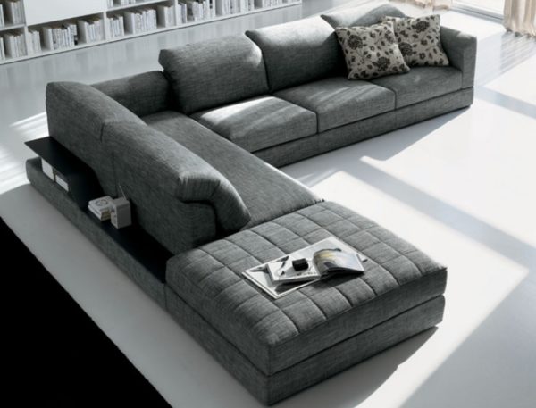 C'est cette combinaison des deux côtés du canapé qui vous permet d'utiliser pleinement l'espace. Cela est particulièrement vrai dans le cas où la pièce est de petite taille. Le canapé d'angle est au sommet de sa popularité en 2019.
