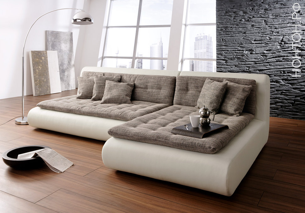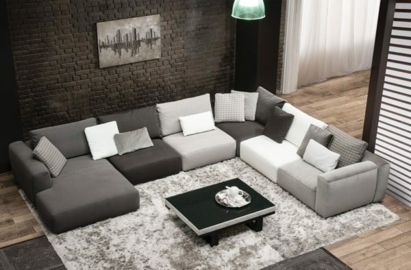 Dans les salons modernes de style scandinave ou loft, hi-tech, minimalisme, les canapés à 2 angles sont très souvent utilisés. Grâce à cela, il est possible de se concentrer sur la zone souhaitée de la pièce, en attirant un maximum d'attention et en rassemblant tous les visiteurs en même temps, même s'il y en a plus de 5-6.