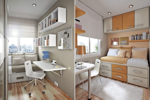 Une sélection compétente de détails intérieurs, la bonne palette de couleurs transformera une petite pièce en une pièce confortable et fonctionnelle.