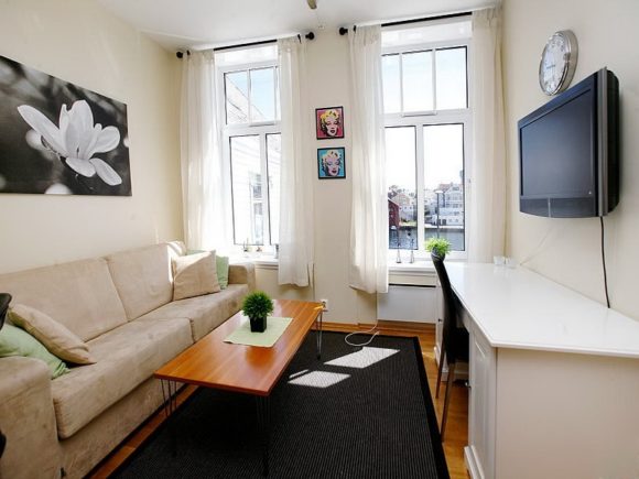 L'abondance d'objets décoratifs - c'est un tabou pour les petites pièces. Divers souvenirs, figurines, peintures, oreillers créeront un sentiment d'encombrement. Une règle importante: placer de grands décors à l'arrière de la pièce, et des petits à l'entrée. Les paysages muraux agrandissent visuellement la pièce.
