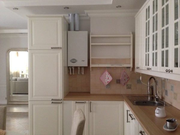 La colonne de gaz ne s'intègre pas non plus harmonieusement à l'intérieur, ce qui réduit la quantité d'espace libre. En conséquence, l'attrait de la cuisine se détériore. Mais même il peut être utilisé correctement avec une réparation réussie et converti en élément de décoration.