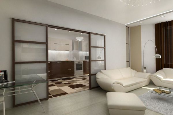 Dans un petit salon, une porte à ouverture standard n'est pas autorisée; il est préférable d'utiliser les idées de conception suivantes: