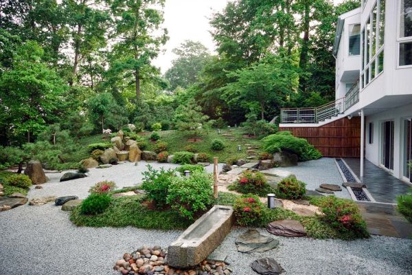 S'il n'y a aucun moyen de faire un réservoir, il peut être simulé. Pour ce faire, disposez un ruisseau sec avec des cailloux légers. Le sol contribuera à ajouter un relief naturel. Le jardin japonais est un endroit unique. Ici, vous pouvez détendre votre corps et votre âme.