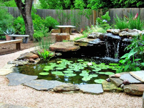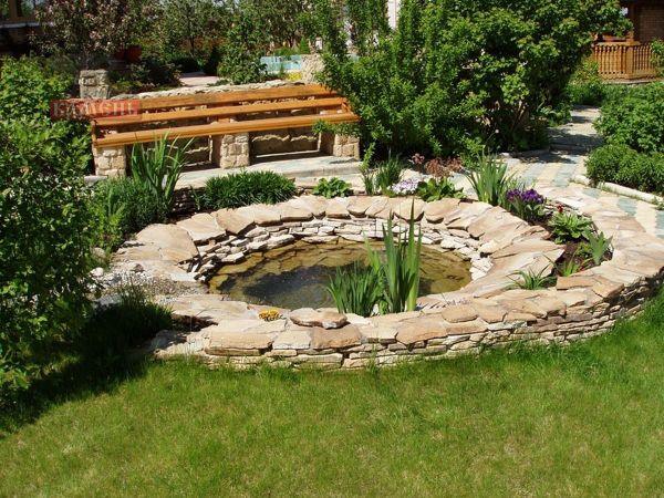 Si vous ne voulez pas vous lancer dans la construction, vous pouvez creuser un trou dans la cour et le remplir d'eau. Pourquoi ne pas planter des lis sur le bord? Ils s'intègrent parfaitement dans la composition globale.
