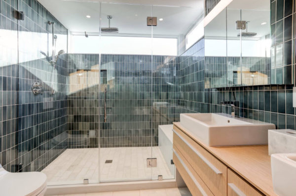 - Il convient de porter une attention particulière à l'ergonomie. La forme et la superficie de la salle de bain elle-même dictent l'emplacement correct de la plomberie.Par exemple, si vous choisissez un lavabo suspendu, il économisera beaucoup d'espace et s'adaptera à n'importe quel intérieur. Et si vous prenez des éviers en verre ou en marbre, ils serviront également d'accent décoratif supplémentaire. Une machine à laver peut être placée sous le lavabo suspendu et une armoire pour les petits articles peut être placée au-dessus. Vous pouvez choisir une douche avec un bac ou avec un drain au sol. Il peut également être équipé d'hydromassage. Tout dépend des idées modernes qui ont trouvé leur application dans cette conception d'une salle de bain avec cabine de douche photo 2019.
