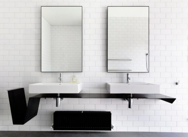 Pour qui les couleurs présentées des salles de bains semblent ennuyeuses, vous devez faire attention aux contrastes (combinaison de couleurs noir et blanc à l'intérieur). Il s'agit d'une nouvelle tendance de la mode qui gagne de plus en plus un public de fans.