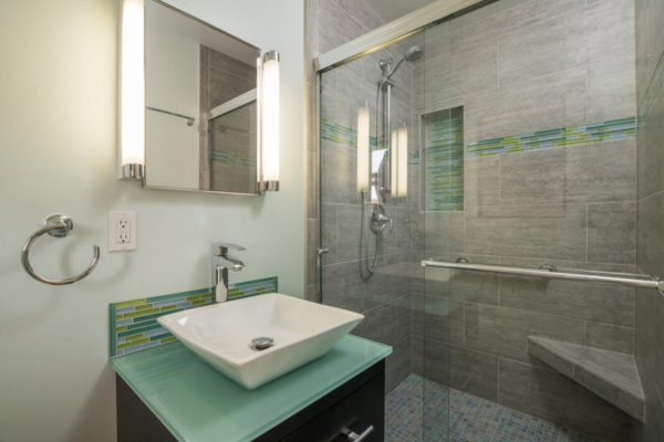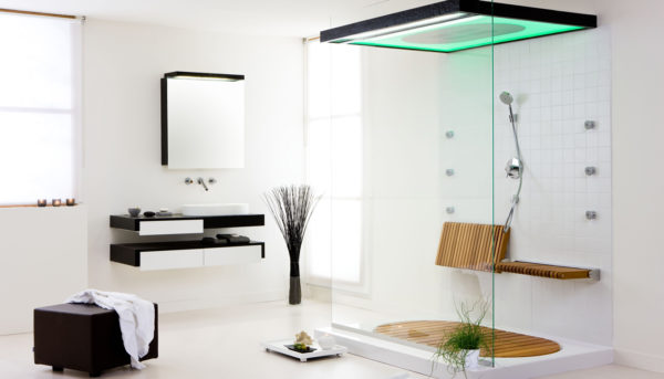 - La conception de la salle de bain avec douche doit être suffisamment éclairée à toutes les hauteurs. Les suspensions ainsi que les luminaires intégrés doivent être placés en plus du plafond, également près des miroirs pour une utilisation confortable.