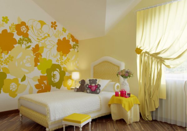 La seule nuance jaune est mieux utilisée comme accents. Sinon, la couleur peut nuire à la psyché de l'enfant, le rendant trop actif.