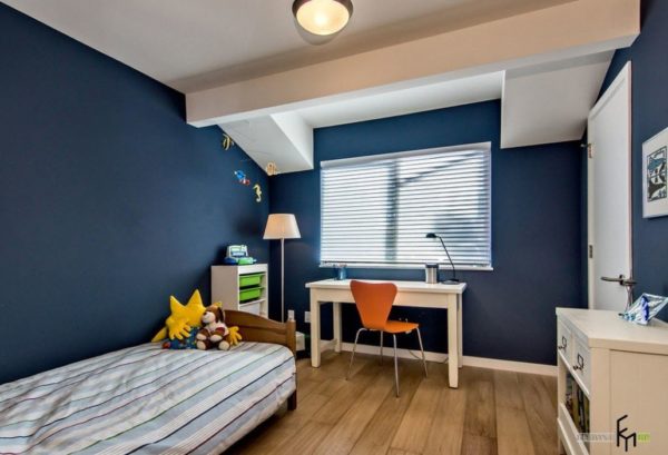 La nuance bleue se marie bien avec un ton blanc neige, beige. Pourquoi ne pas concevoir une pièce dans un style marin. Tous les garçons de cette idée seront ravis.