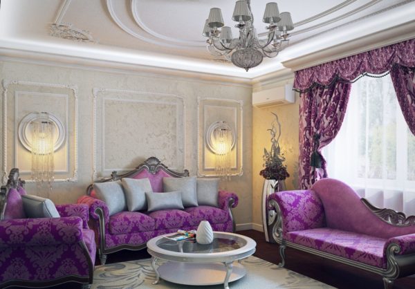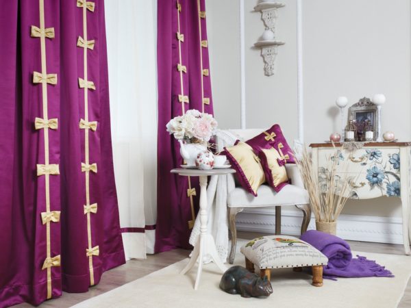 Avant de ramasser les rideaux violets pour le hall ou le salon, vous devez considérer complètement la conception de la pièce.