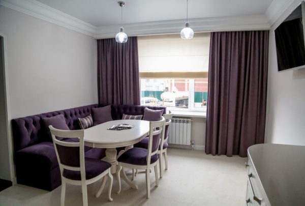 Les rideaux violets frais sont parfaits pour le coin cuisine. S'adaptant parfaitement à presque tous les intérieurs, ils rendent la salle à manger agréable et confortable pour les dîners en famille et les dîners, tout en augmentant votre appétit.