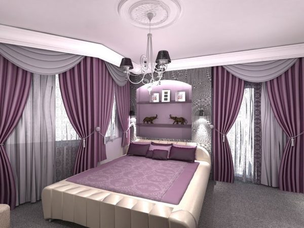 Dans la zone de couchage, les teintes lilas et lilas conviennent mieux. Ils auront fière allure à la fois sur les rideaux lourds et sur les rideaux d'air légers.