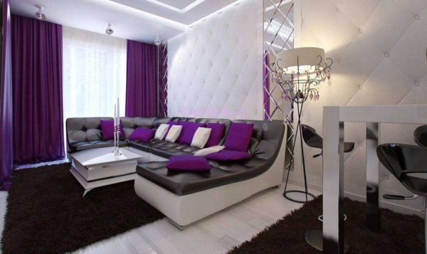 - La compatibilité des couleurs violettes et blanches ajoutera de la tendresse à l'intérieur et la pièce deviendra plus féminine.